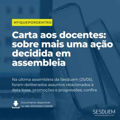 No ano de 2020, a Seção sindical dos docentes da UEM – SESDUEM completará 13[...]
