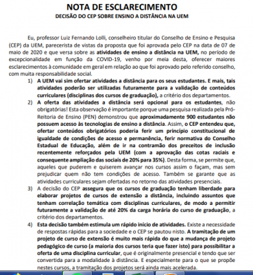Eu, professor Luiz Fernando Lolli, conselheiro titular do Conselho de Ensino e Pesquisa (CEP) da[...]