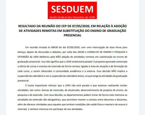 No ano de 2020, a Seção sindical dos docentes da UEM – SESDUEM completará 13[...]